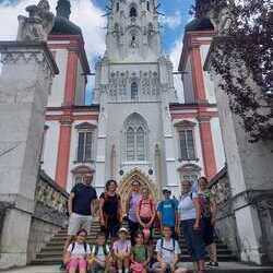 und ziehen dann mit unseren Laternen über die Wohnstraße zur Kirche.