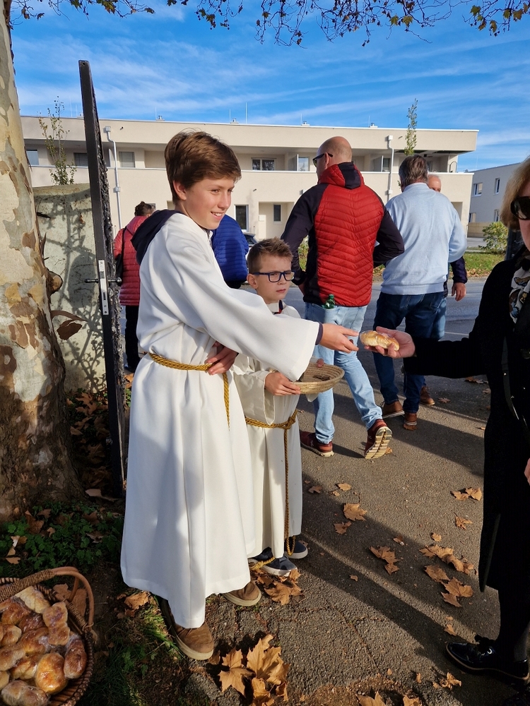 Christa und Diakon Franz Habith brachten in ihren Texten und Gebeten viele Gedanken zum Leben und Sterben zum Ausdruck und segneten zum Abschluss alle Grabstätten. Unterstützt wurden sie dabei von den vielen Minis, die nach der Feier an den Friedhofsausgängen ihre selbst gebackenen Allerheiligenstriezerl anboten und sich über freiwillige Spenden freuten.